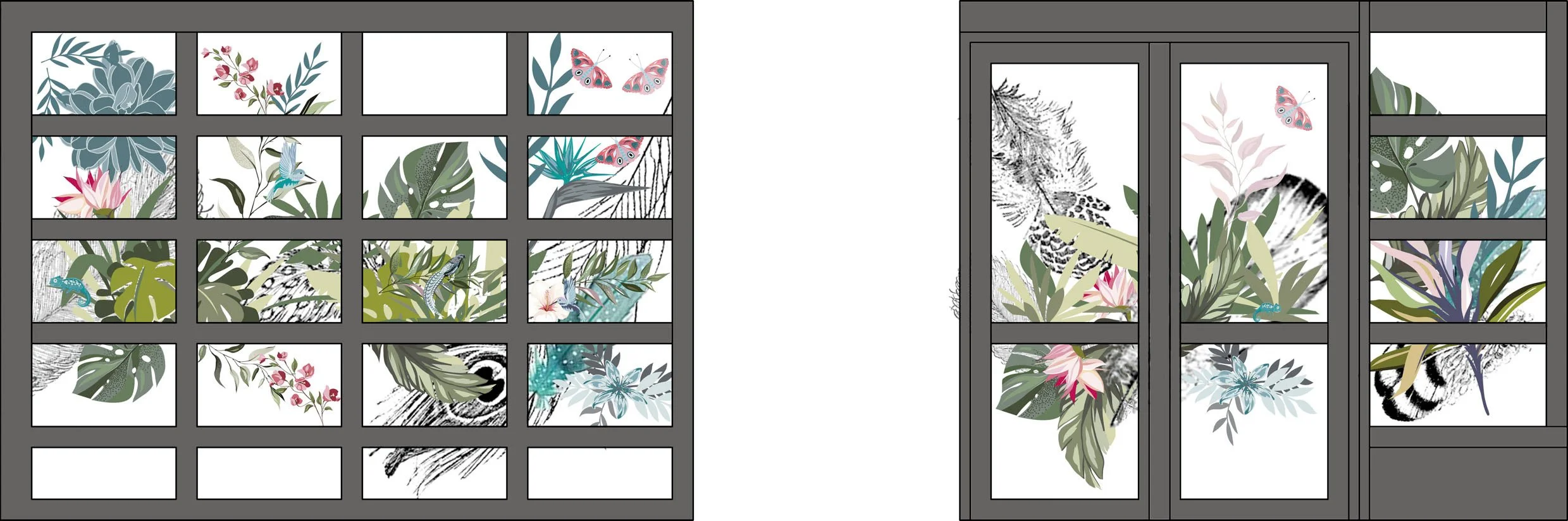 Création d'une fresque aux ambiances tropicales pour dissimuler partiellement l'intérieur du bâtiment. Ces fresques ont été réalisées, en s’inspirant des jardins martiniquais de Joséphine de Beauharnais, épouse de Napoléon.
